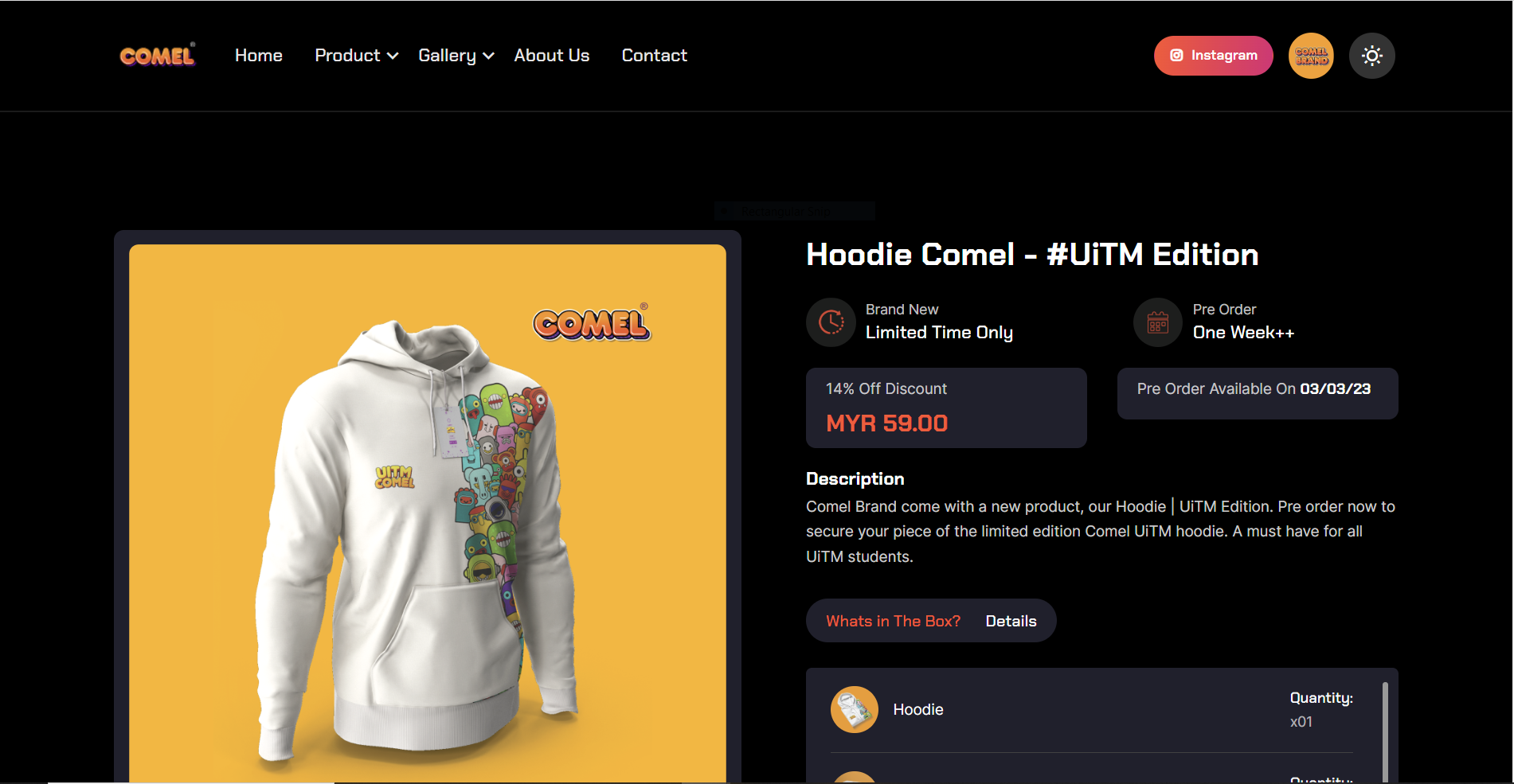 Comel Brand is a company that's all about clothing, and you know what's their superstar product? Hoodies, yeah, you heard it right! My job? I'm creating their website. You know, the place where you click around and see all the awesome hoodies? We're making it look super cool and easy to use (that's the UI/UX part), and I also building all the techie stuff to make it work (that's web development).