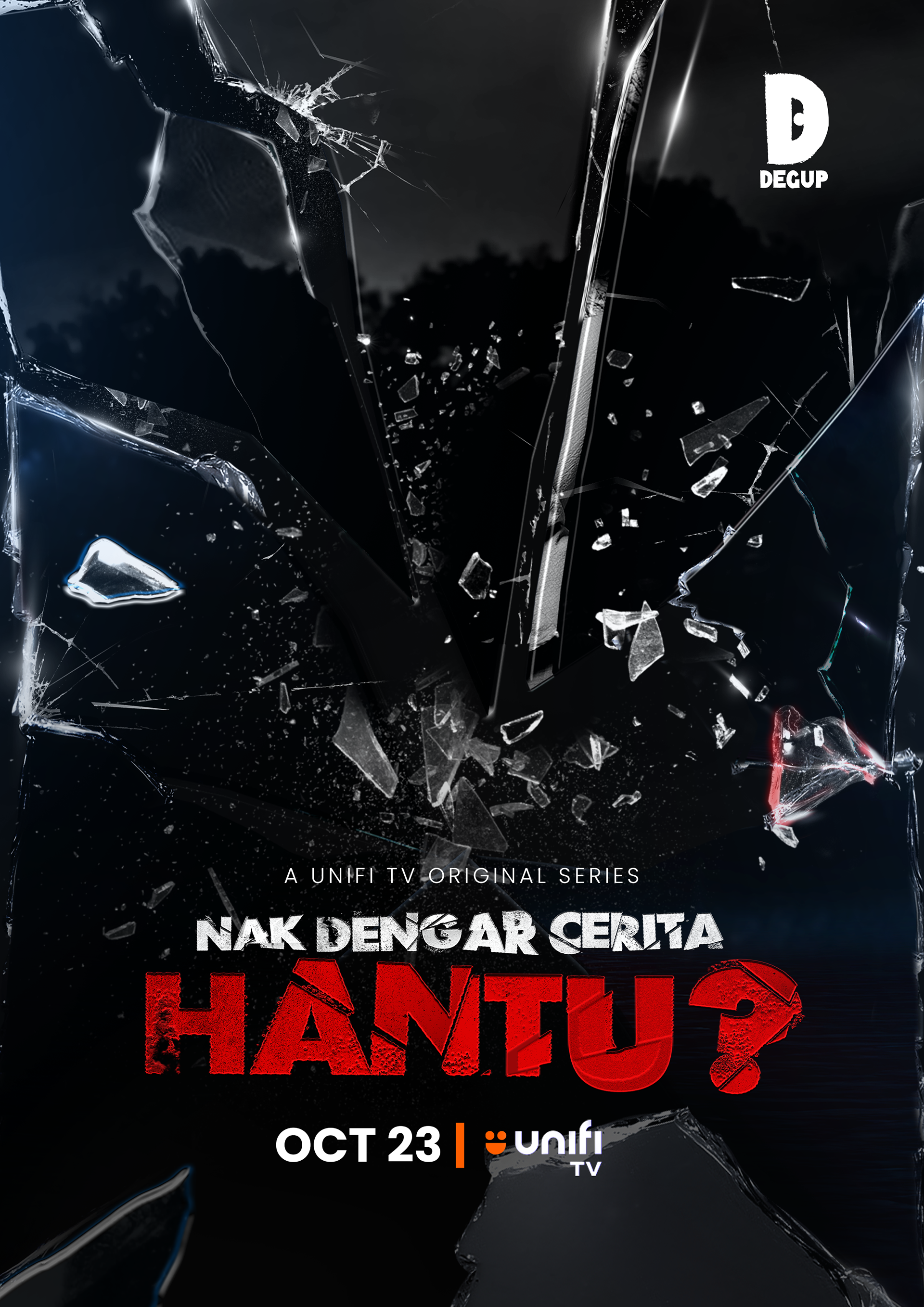 Branding Elements: Unifi TV logo and 'Nak Dengar Cerita Hantu?' masthead subtly incorporated.